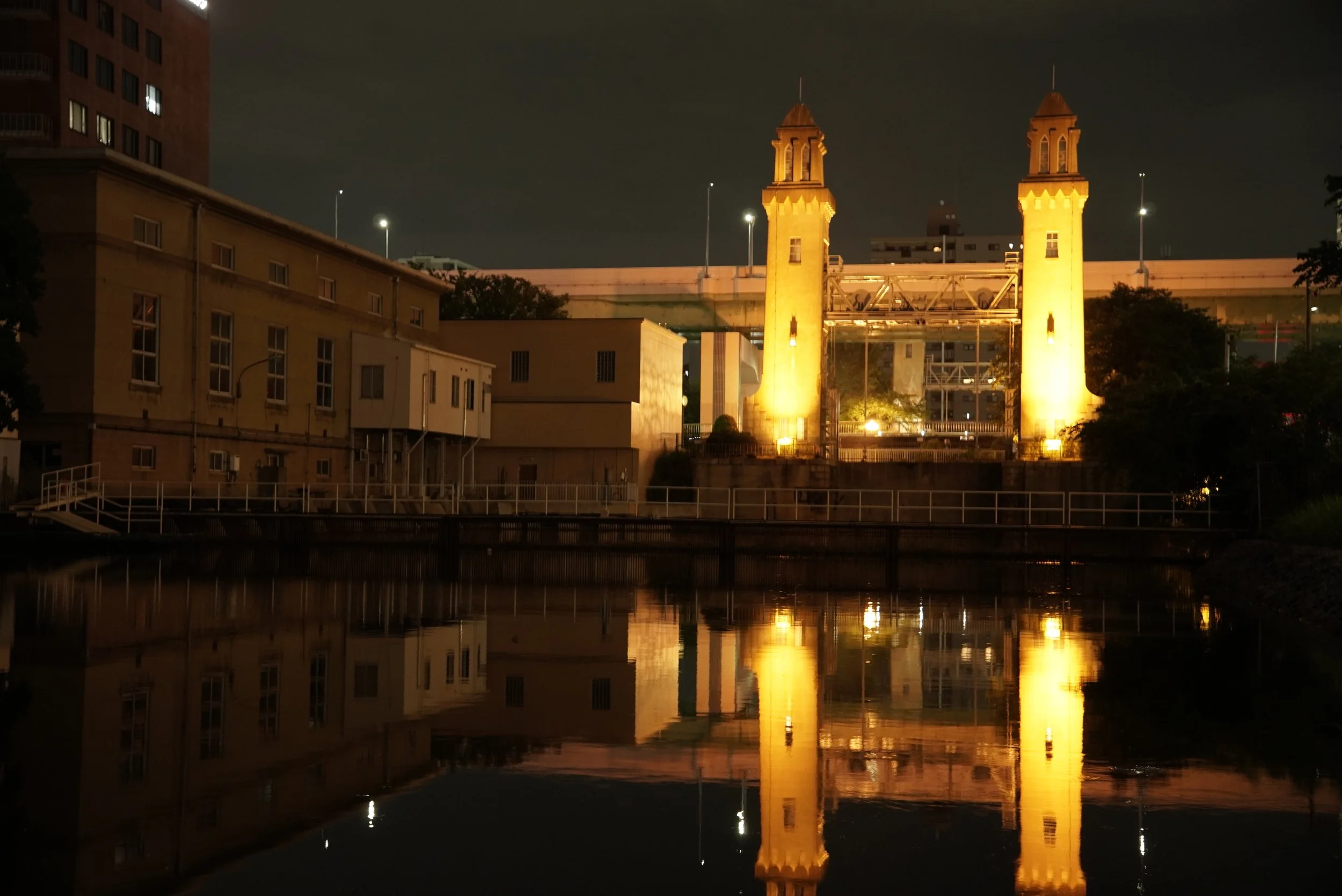 隣接する巨大建築物、旧松重ポンプ所は、その役目を終えて、静かな眠りへと入っていました。当時のままの無骨で大迫力の空間で、アーティスト・玉山拓郎氏 @takurotamayama による光のインスタレーションを開催します。